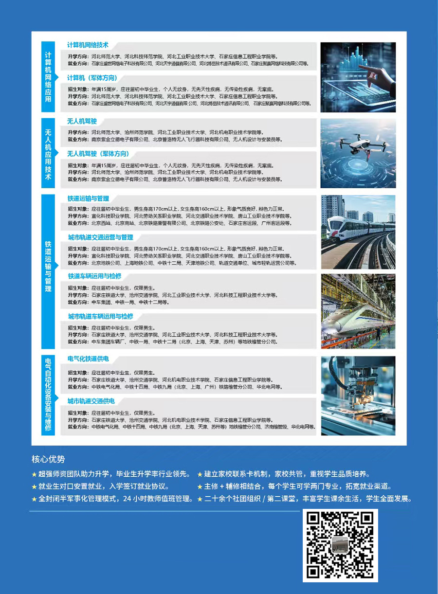 河北工程职业技工学校2026春季招生专业计算机广告制作、消防工程技术、电子商务专业、幼儿教育专业、汽车维修专业、会计专业、中药专业、护理专业、口腔义齿制造专业、计算机网络应用专业、无人机应用技术、铁道运输与管理专业、电气化自动化设备安装与维修专业等。